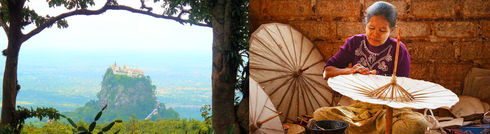 After breakfast, we begin the full day’s excursion with a drive to Salay Village (35miles/1,5hrs) and visit the 300-year-old Yoke Sone Teakwood Monastery. The monastery houses largest lacquerware Buddha image in the country and is one of the best-preserved Teak wood monasteries with intricate carvings adorning its walls and railings. Next, a 1.5 hrs drive takes us to Mount Popa, the Burmese spiritual epicentre for those who worship the pantheon of Nat spirits and martyrs. After paying respects to the Nat spirits shrine at the foot of Mount Popa, we climb the 700 and some steps leading to a pagoda on top of a volcanic plug mountain rising above the surrounding farming lands. In the afternoon, we will drive back to Bagan with a stop at local palm sugar makers hut. If lucky we might see him climbing up the palm trees to collect toddy and how the sweet juice is processed to jaggery caramel-like toddy candies.